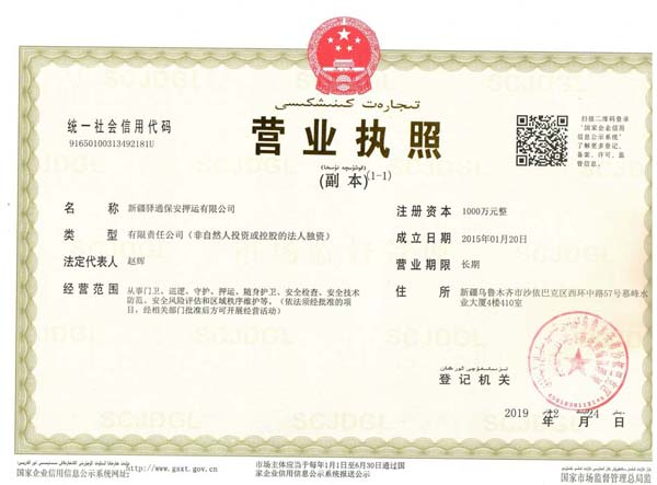 新疆驛通營(yíng)業(yè)執(zhí)照