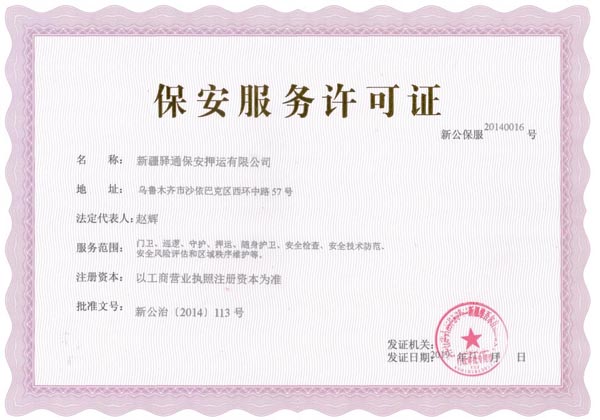 新疆驛通保安押運(yùn)有限公司,注冊(cè)資本1000萬(wàn)元人民幣,具有獨(dú)立法人資格,下設(shè)部門有:綜合管理辦公室、人力資源部、指揮中心、保衛(wèi)部、財(cái)務(wù)部、業(yè)務(wù)部、押運(yùn)部、督察隊(duì)、公司金庫(kù)。公司建立了符合市場(chǎng)和現(xiàn)代企業(yè)要求的經(jīng)營(yíng)運(yùn)作模式和管理機(jī)制,有一套較科學(xué)的經(jīng)營(yíng)管理制度、守押勤務(wù)制度、守押作業(yè)規(guī)范化操作制度和標(biāo)準(zhǔn)。